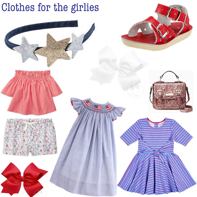 Oh, and Sarah has been wearing red, white, and blue all week. Caroline wears a uniform to school, but I still get to dress Sarah each day. She only goes three days a week, but she and I have had fun pulling out her festive red, white, and blue clothes. I love making each holiday special with the kids. One way I think it is fun to do this is having them dress in a festive way leading up to whatever holiday is next. (Don't worry - they won't be in Halloween clothes next week)!! Anyway, I'll link a few of my favorite looks for the girls too!